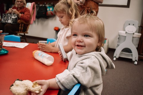 Our volunteer teachers incorporate songs, stories, and interactive play to help the children learn about God's love and the Bible. Age appropriate toys and curriculum are used in each class. A small snack is given each week (cheerios, goldfish, etc.), so please advise your child's teacher of any food allergies or medical conditions they need to be aware of.
