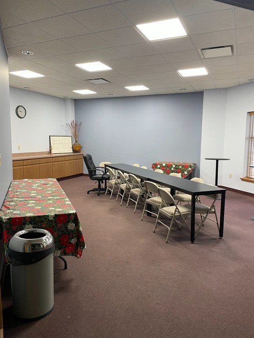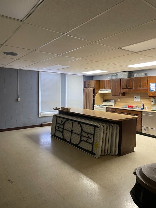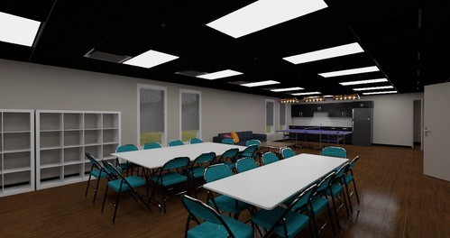 However, this area still needs quite a but of work. We need to update the flooring and get rid of the old stained and weathered carpet. We also need some sound equipment and panels to achieve an even sound in the who space.