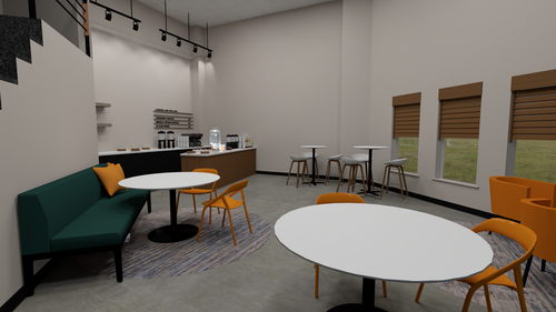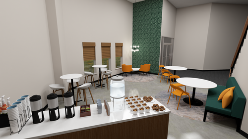 We have a great lobby area in our building and it doesn't need a lot of updating but we do need some wayfinding signage updates for first time visitors and some furniture to create some additional space for connecting outside of the cafe. We will also be enhancing our new here area to help us make a great first impression on "The 1"